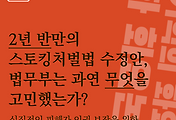 | 2년 반만의 스토킹처벌법 수정안, 법무부는 과연 무엇을 고민했는가? - 실질적인 피해자 인권 보장을 위한 제대로 된 스토킹처벌법 제정이 필요하다 (0) | 2020.12.22 |