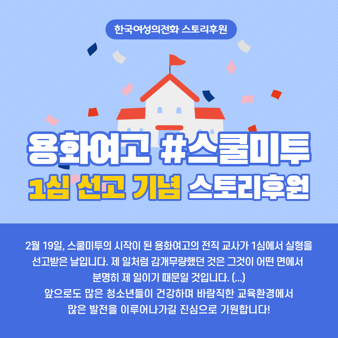 한국여성의전화가 재판 방청, 기자회견 공동 주최 등으로 지원해왔던 용화여고 #스쿨미투 1심 판결이 있었는데요!
