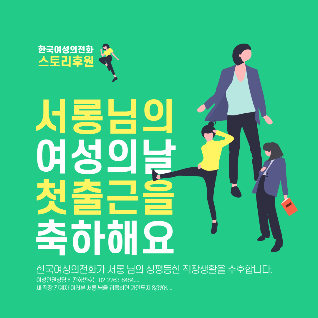 의미심장한 출근일처럼 성평등한 직장 생활 되시기를, 한국여성의전화가 응원하겠습니다!
