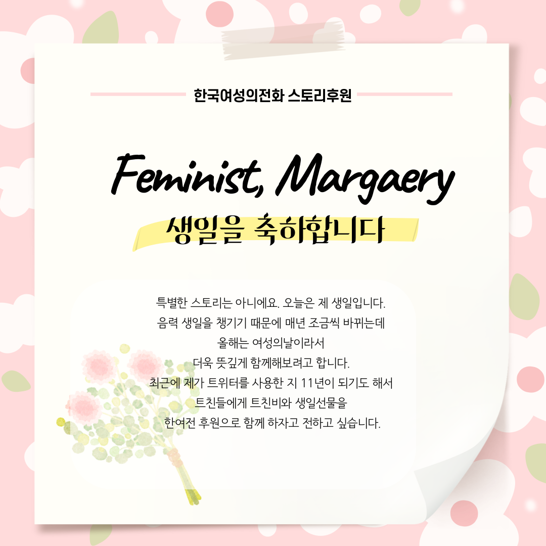 3.8일 생일을 더욱더 뜻깊게 보내보려 트친들과 함께 한국여성의전화에 후원하셨습니다!