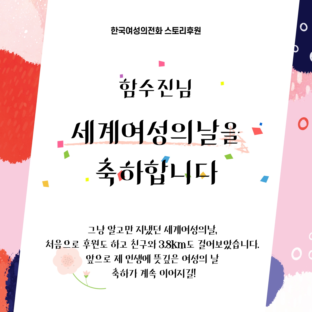 함수진 님께서 세계 여성의날을 맞아 한국여성의전화에 후원 메시지를 보내주셨습니다!🥰🥰