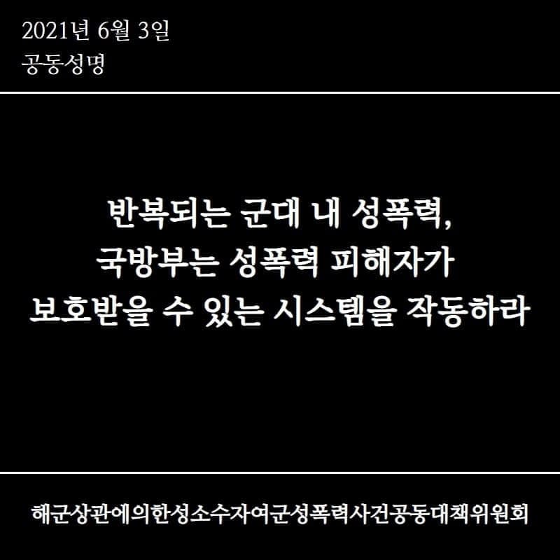 "반복되는 군대 내 성폭력, 국방부는 성폭력 피해자가 보호받을 수 있는 시스템을 작동하라"