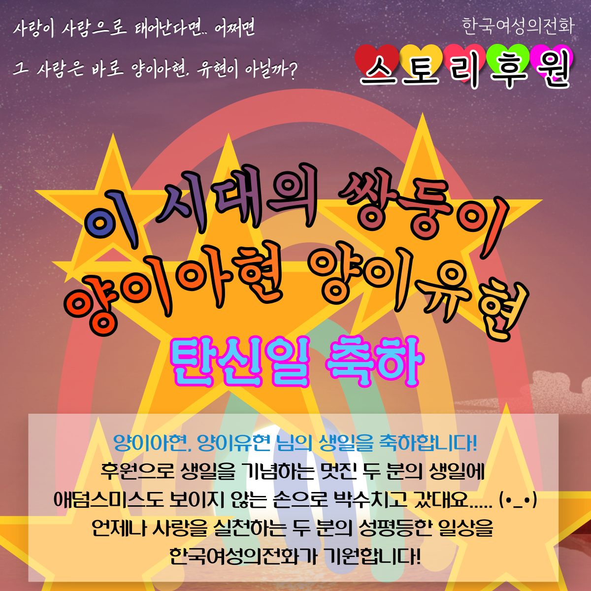 이 시대의 사랑을 실천하는 이 시대의 쌍둥이 양이아현, 양이유현 님의 생일을 축하합니다!
