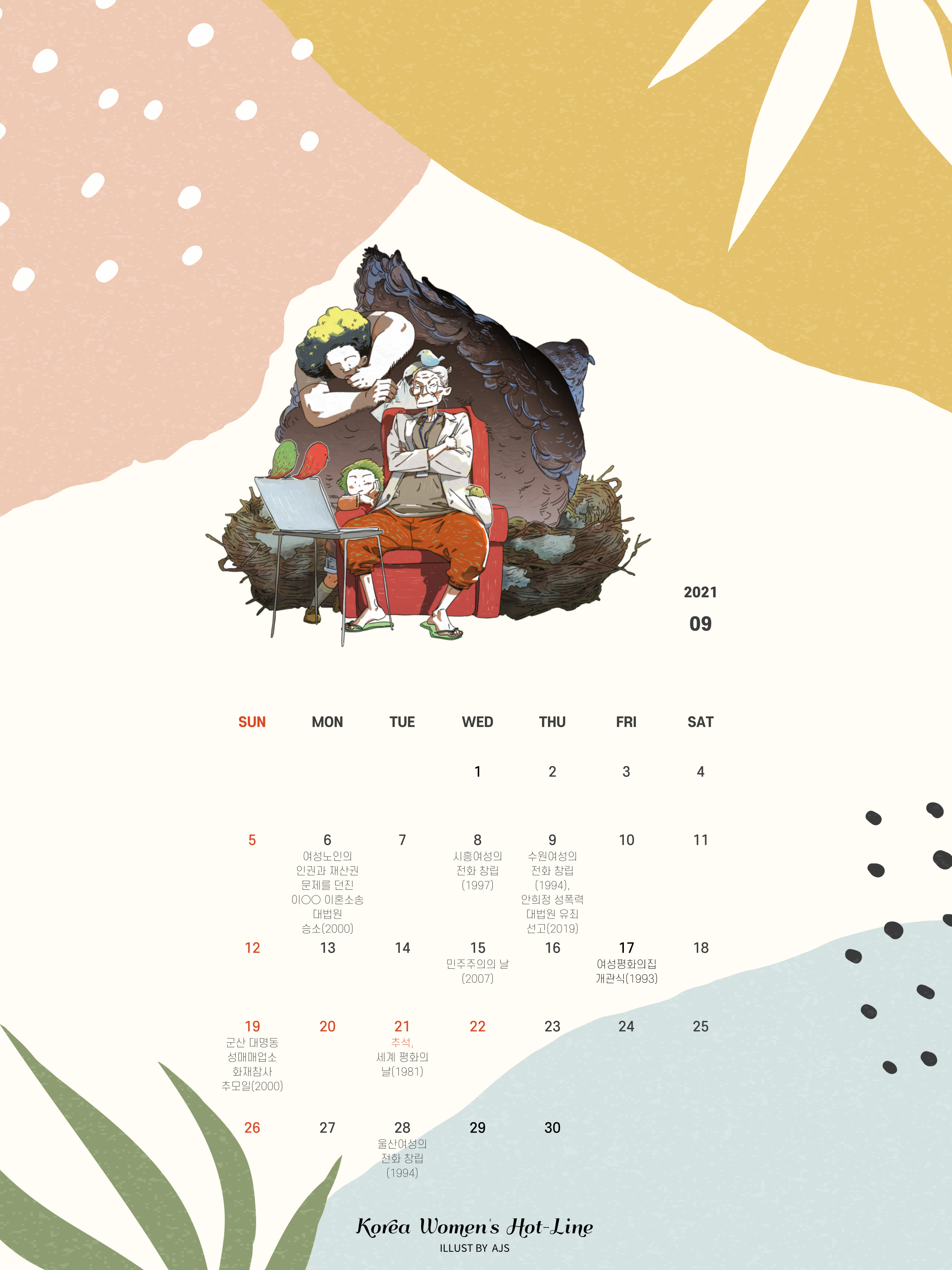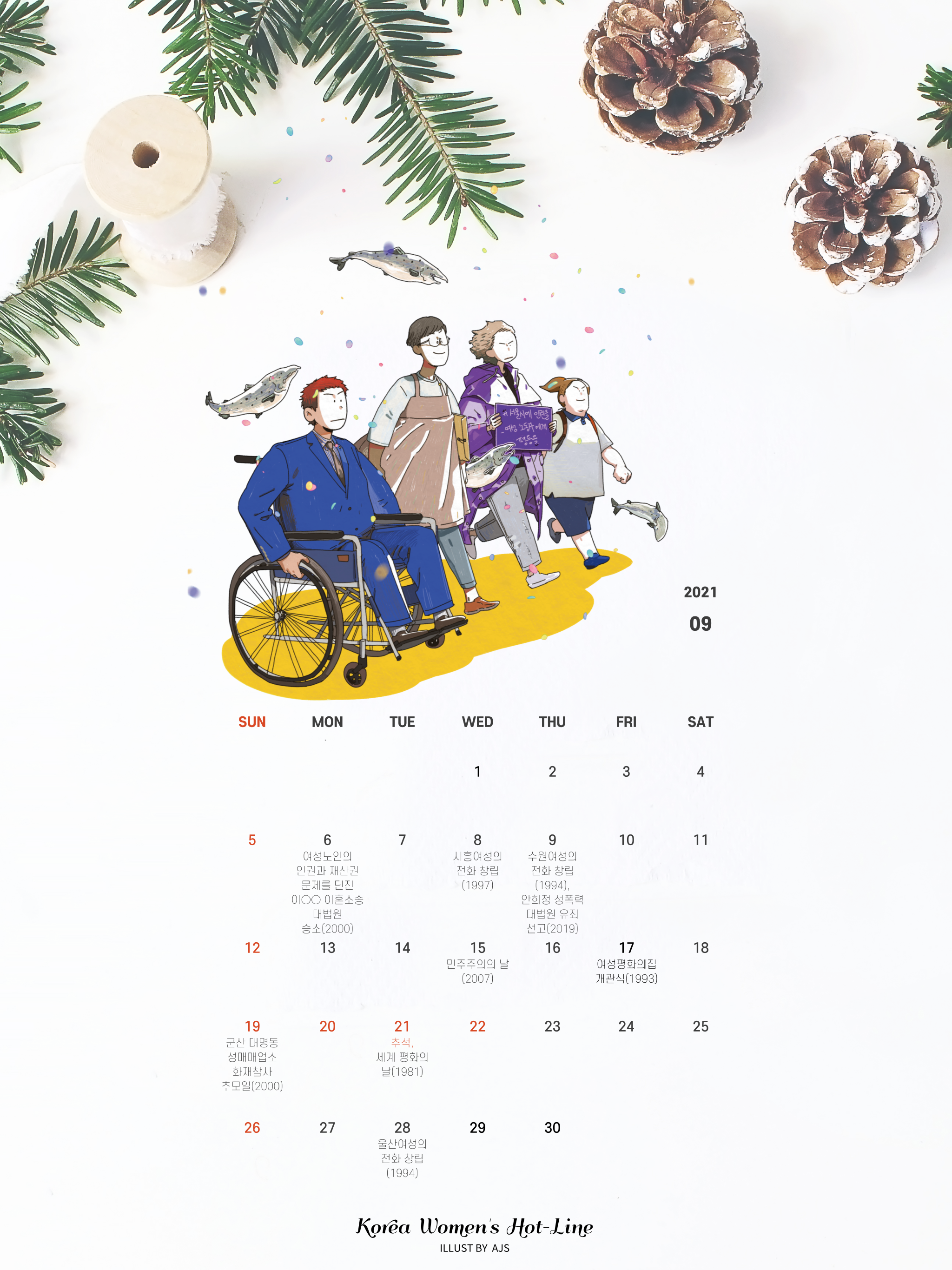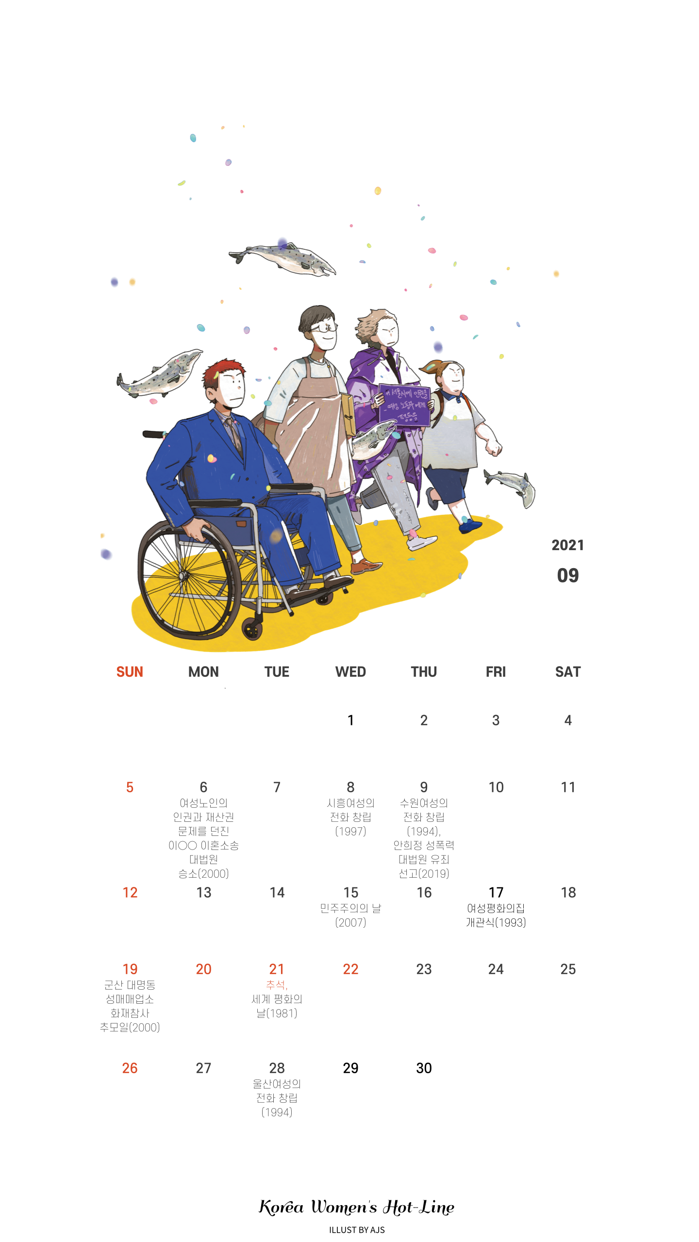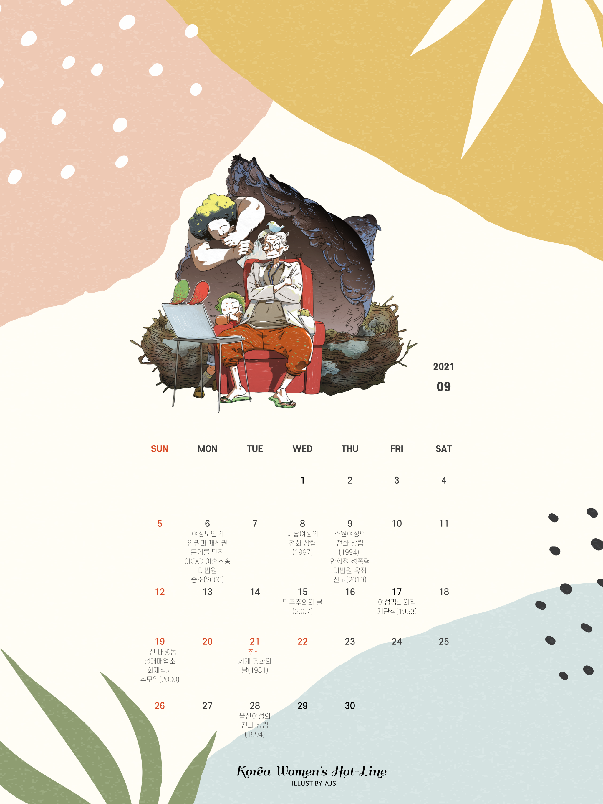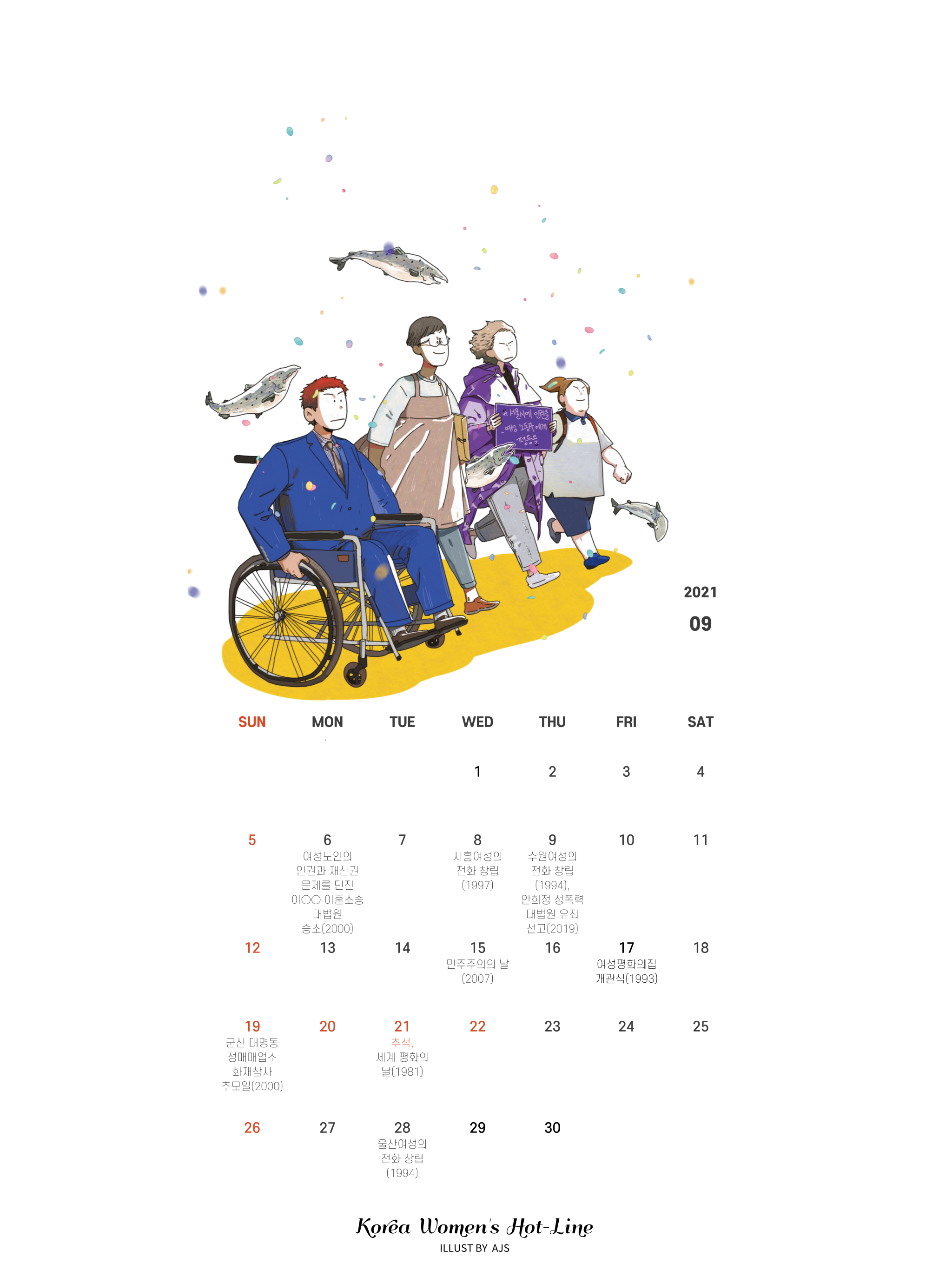 9월을 맞아 여성 수첩에 사용된 일러스트, 여성 인권 관련 기념일이 담긴 캘린더 배경화면을 공유합니다.