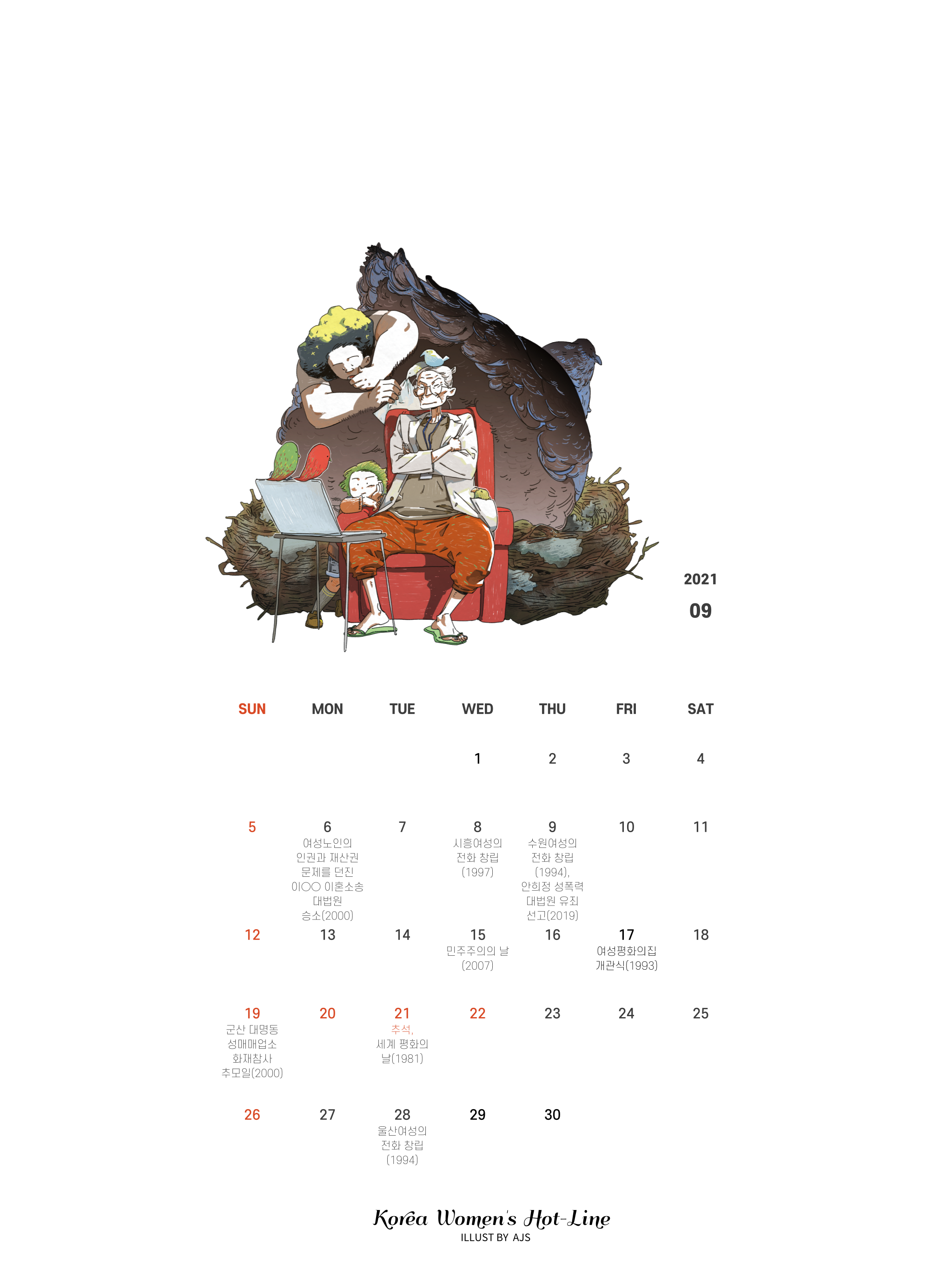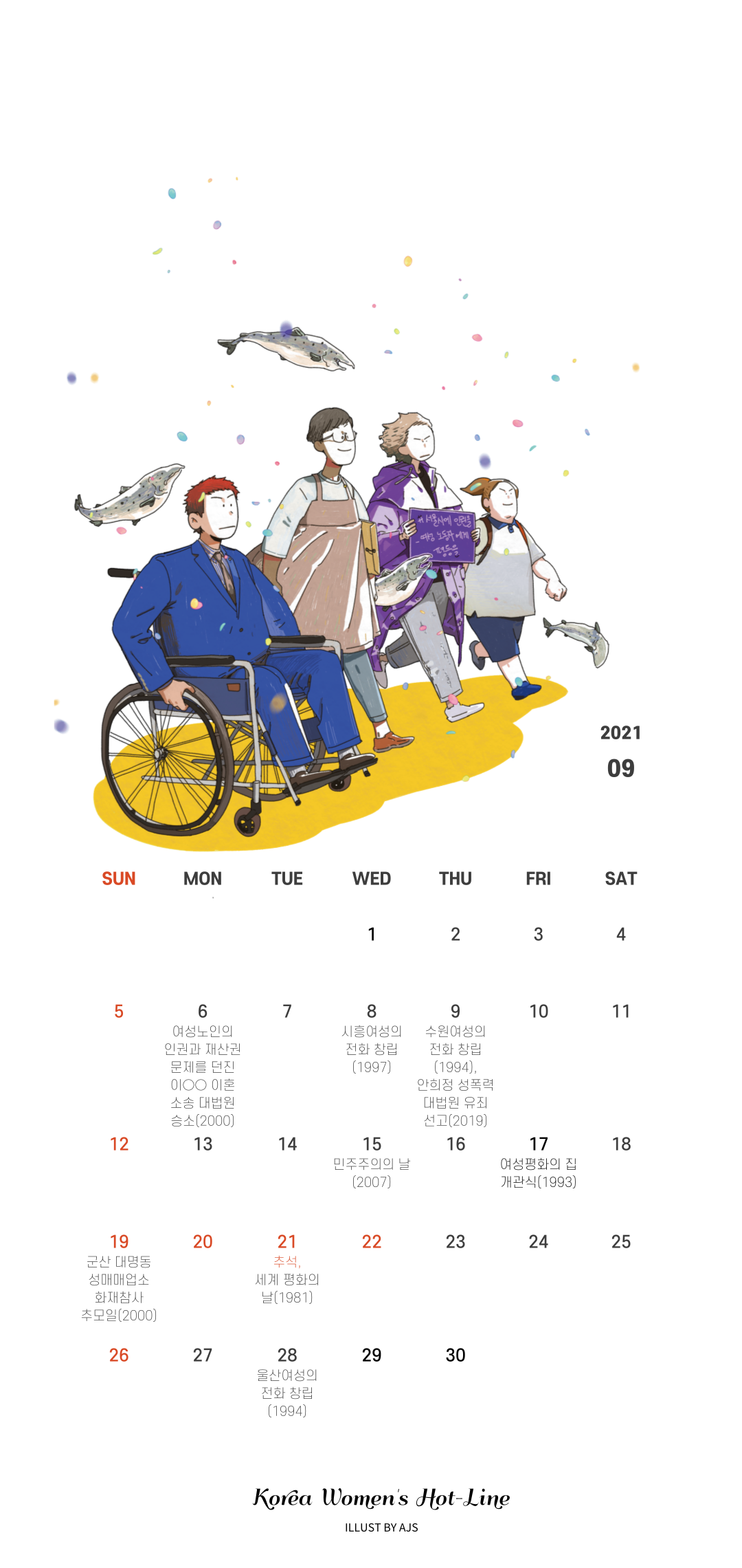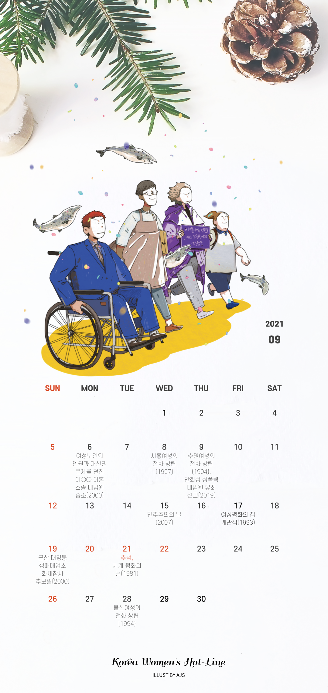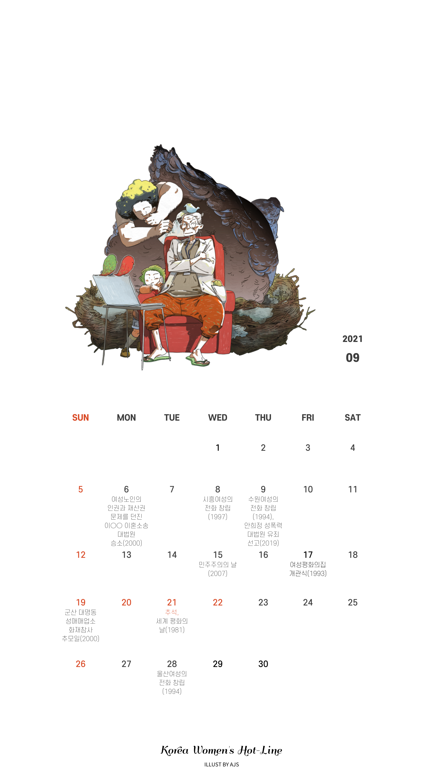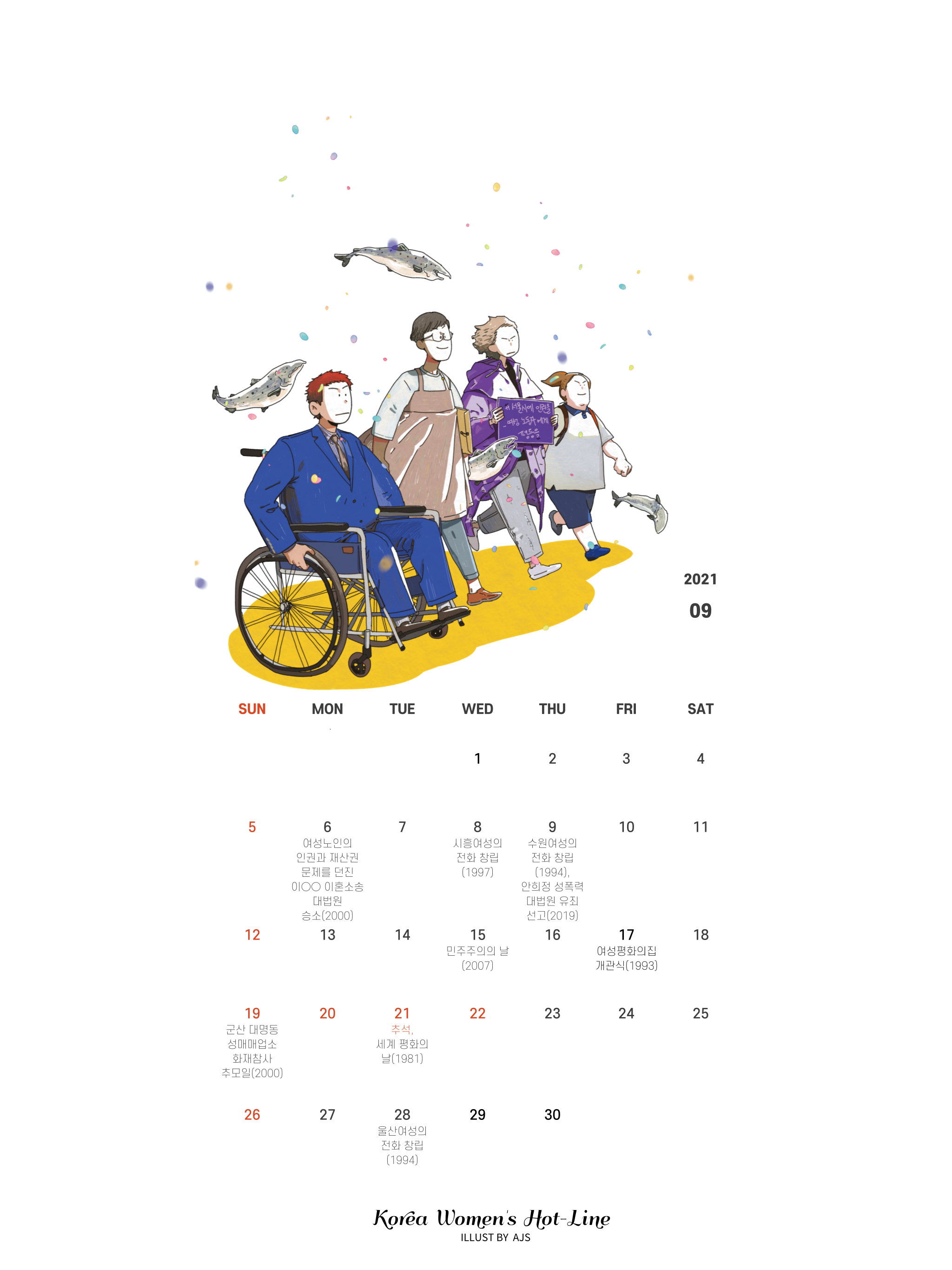 9월을 맞아 여성 수첩에 사용된 일러스트, 여성 인권 관련 기념일이 담긴 캘린더 배경화면을 공유합니다.