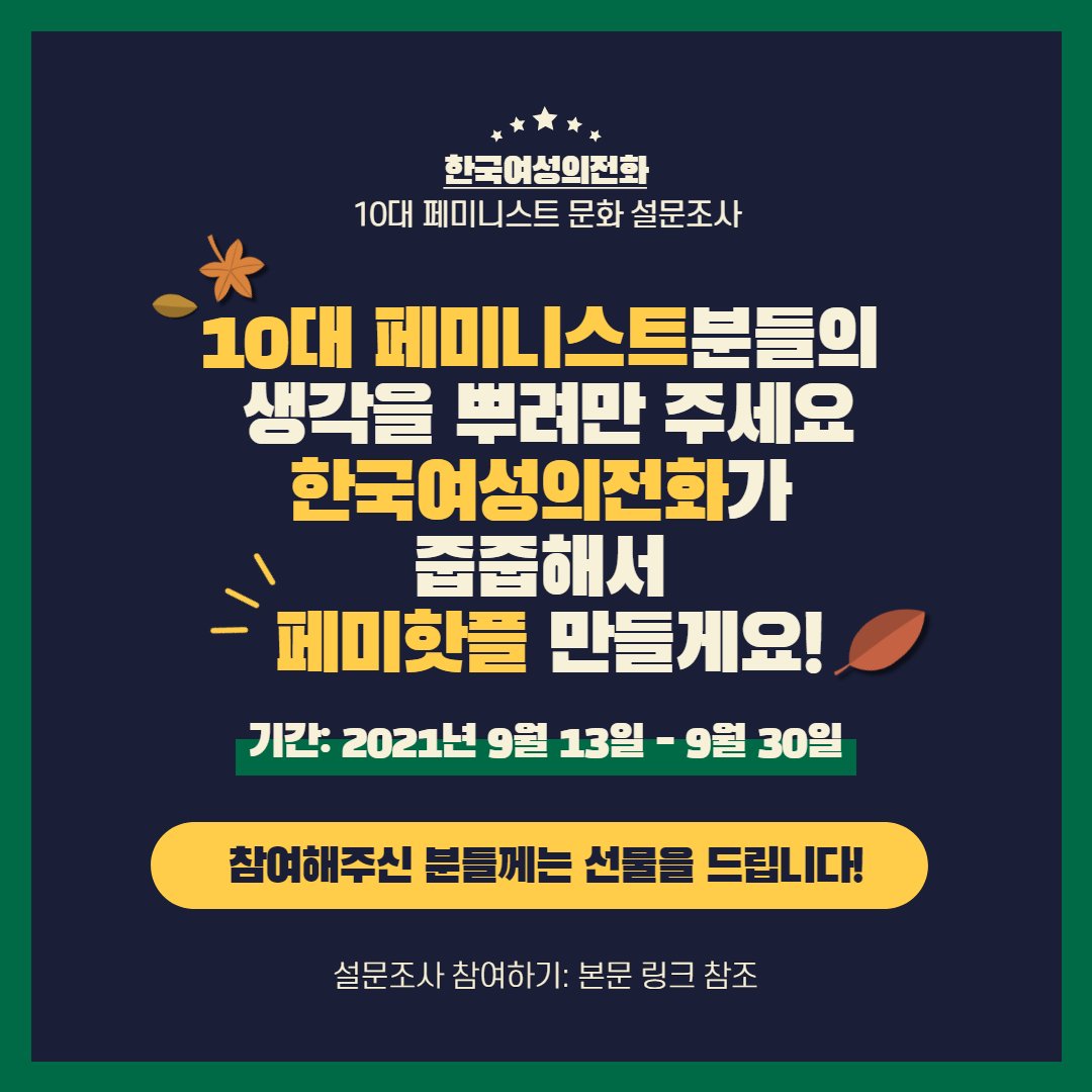여러분의 생각으로 10대 페미 천국 한국여성의전화를 만들 수 있습니다!