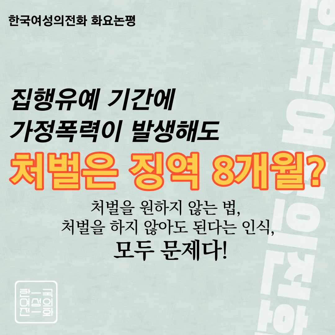 동종범죄로 유죄판결을 받고, 집행유예 기간에 범죄가 발생하였음에도 8개월에 그치는 형량은 피해자의 신고 의지를 꺾기에 너무나 충분하다. 언제까지 국가는 가정폭력을 방조할 것인가. 가정폭력처벌법 목적조항 개정을 포함하여 상담·교육으로 폭력을 해결하려는 안일한 관점의 법·제도를 바꾸는 것이 가정폭력 근절의 시작이다.