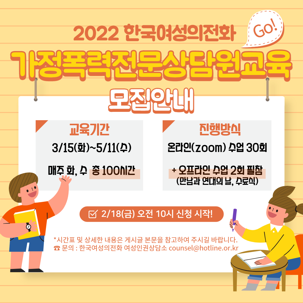 * 성폭력전문상담원교육은 5월~7월 경 진행될 예정입니다.