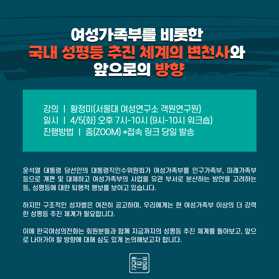 | 한국여성의전화 회원들과 함께하는 <소동: 소란스런 동네모임> 정치편 참여 안내 (0) | 2022.04.01 |