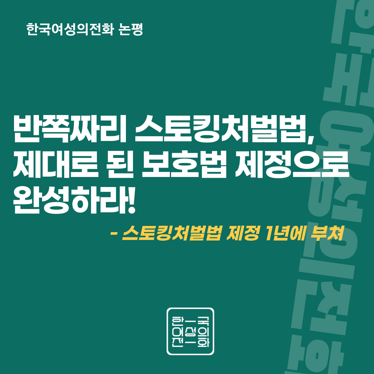 반쪽짜리 스토킹처벌법, 제대로 된 보호법 제정으로 완성하라!
