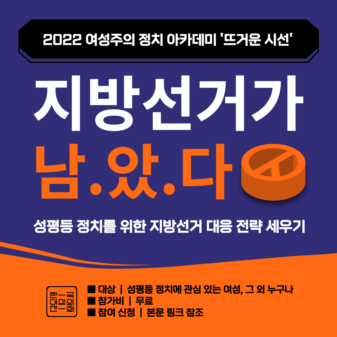 한국여성의전화는 6월 1일에 진행되는 제8회 전국동시지방선거를 앞두고 성평등 정치 실현을 위한 지방선거 대응 전략을 모색하는 정치 특강을 진행합니다.