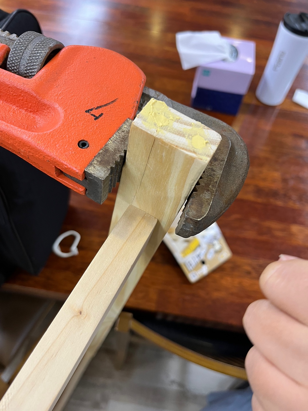 이렇게 생긴 나무 행거인데요. 하단 T자 접합부의 목재가 갈라져서 행거가 제대로 서있지 못하는 상태였습니다. 과연 어떻게 수리할 수 있을까요?