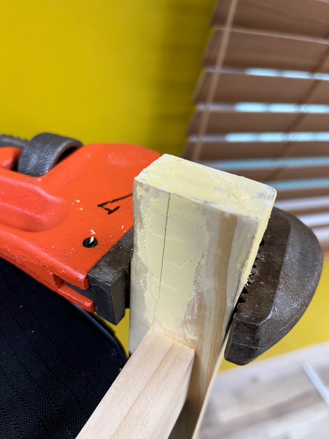 이제 육안상으로는 틈을 모두 메워준 것처럼 보입니다. 내부까지 꼼꼼히 접합이 되지는 않았을 것 같지만, 손으로 할 수 있는 만큼은 최선을 다한 것 같습니다. 그렇지만 우드퍼티만으로는 충분히 지지가 되지 않을 것 같아서, 테이프 등으로 목재 겉면을 꼭꼭 싸줄 예정입니다. 그리고 나사를 박아서 바닥부 목재에 다시 고정해주면 완성되겠죠?