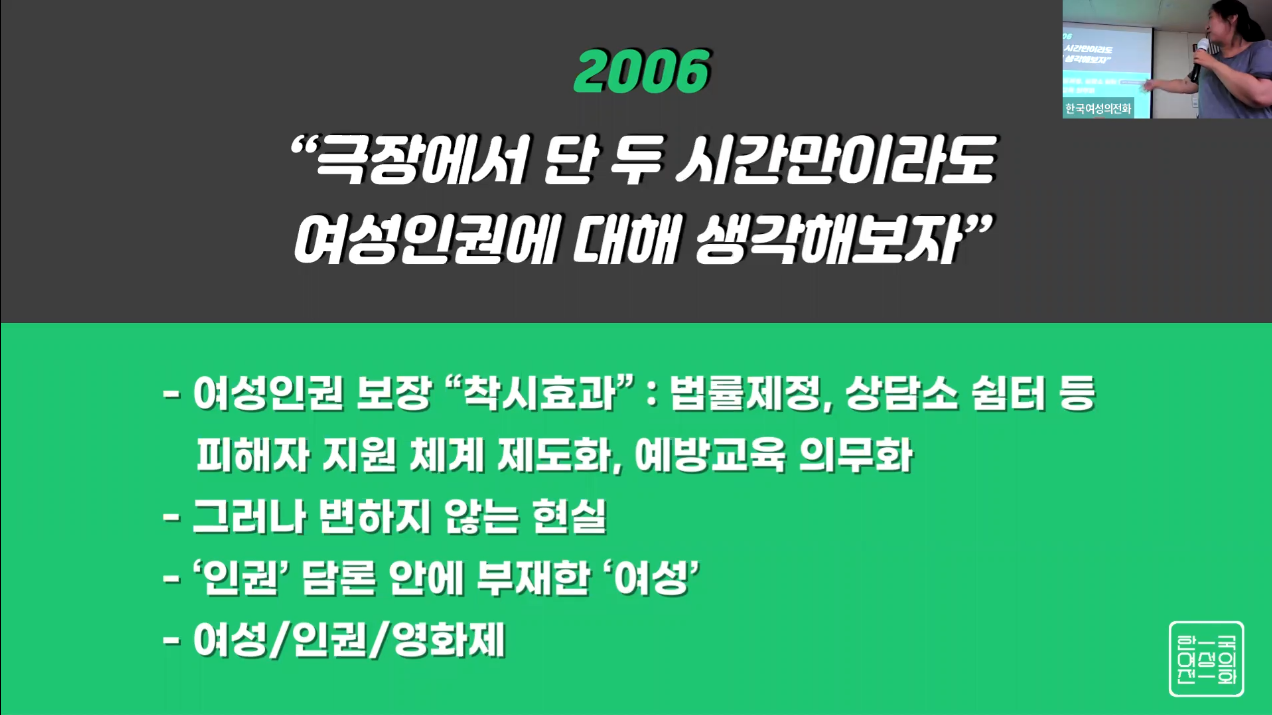 마지막 강의는 여성인권영화제의 의미와 목표를 알아보는 시간이었습니다.