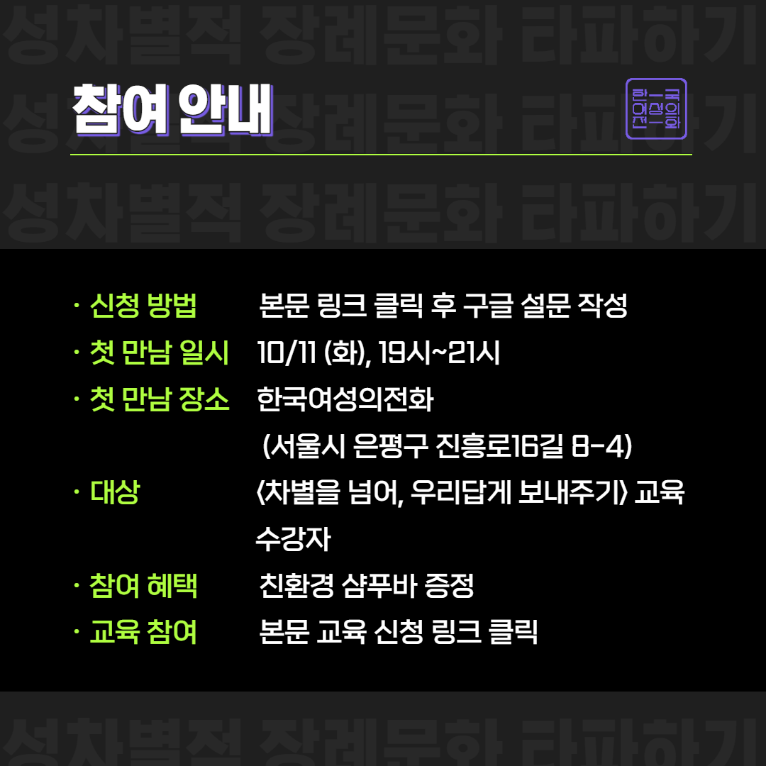 · 문의: 한국여성의전화 기획조직국 02-3156-5433, member@hotline.or.kr