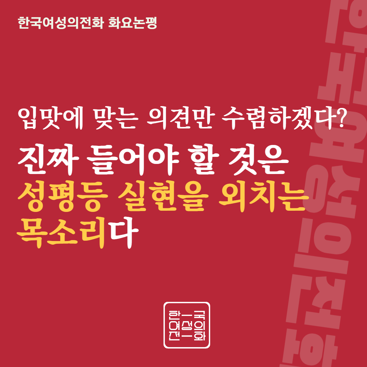 입맛에 맞는 의견만 수렴하겠다? 진짜 들어야 할 것은 성평등 실현을 외치는 목소리다