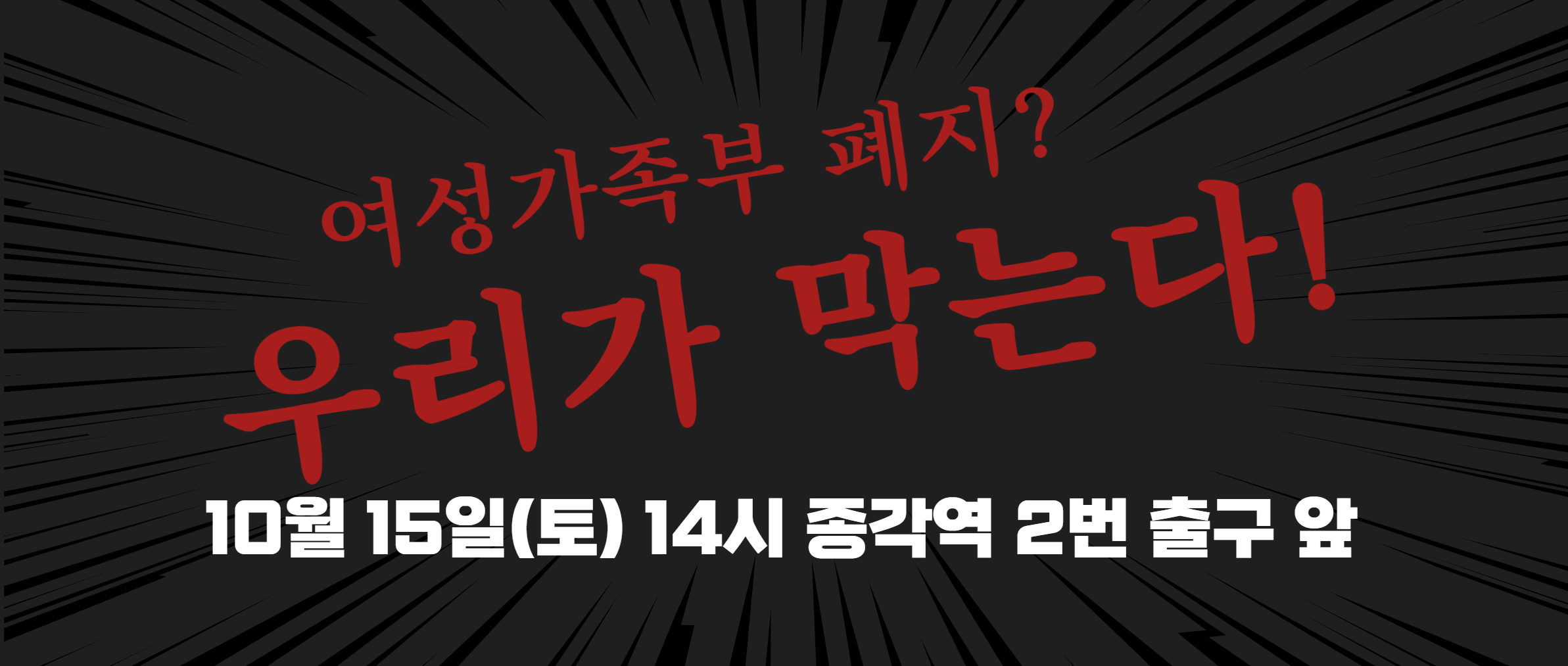 - 10/15(토) 14시, 종각역 2번 출구에서 여성가족부 폐지안 규탄 전국 집중 집회가 진행됩니다!