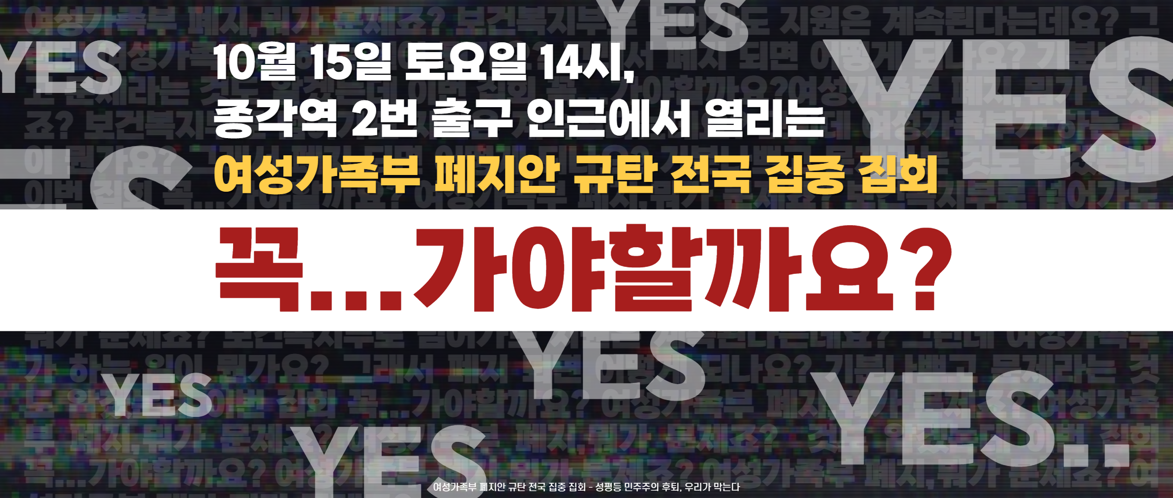 - 오는 10월 15일, 여성가족부 폐지안을 규탄하기 위해 ‘성평등 민주주의 후퇴, 우리가 막는다’는 이름으로 전국 집중 집회에서 만납시다!