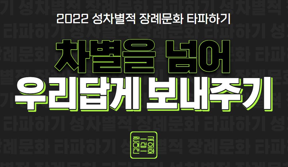 기존의 장례문화는 혈연 중심의 ‘정상가족’만을 애도의 주체로 인정하며 이에 속하지 않는 다양한 관계를 배제합니다. ‘전통’과 ‘의례’라는 명목하에 가부장적인 의사결정, 성역할 고정관념에 따른 의복과 역할 구분 등 성차별적인 관행이 답습되고 있습니다. 하지만 장례는 일상적인 상황이 아닌, 예외적인 상황이기에 장례를 치를 때 개인이 차별에 대한 문제를 즉각 제기하고 변화를 만들기 어렵다는 특성이 있습니다.